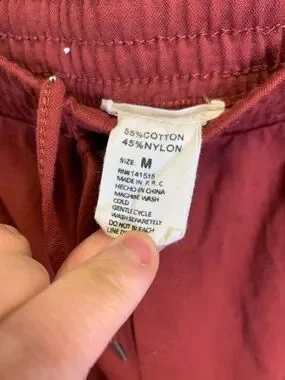 Everyday rust red joggers with an adjustable drawstring waist. Soft, breathable fabric with front patch pockets for convenience. Elastic cuffs provide a tapered, modern silhouette. Versatile for lounging or casual outings.