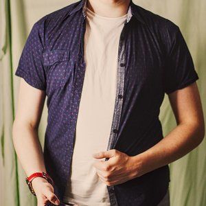 Men's S Navy Abstract Patterned Button-Down Shirt