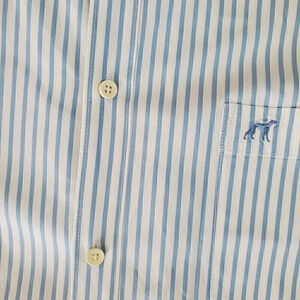 Men's Sacoor Brothers light baby blue vertical striped button-down shirt, size XXL extra extra large, in NWOT new without tags condition. This is a great shirt, perfect for an upcoming wedding, or any summer event. A couple of the buttons are a little dented or have chips in them (see pics). Measurements are approximately 31.5" long and 25.5" from pit to pit. Material content is 100% cotton.