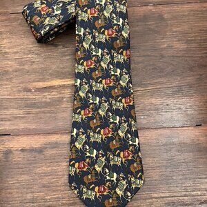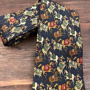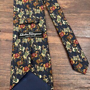 Men's SALVATORE FERRAGAMO, War Horse Design On Black 100% Silk Necktie Tie