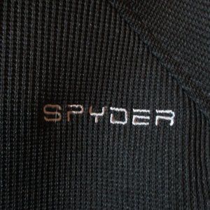 Awesome men authentic SPYDER ribbed turtleneck, top zip thermal top / sweater / pullover in BLACK, size M, which measures approx 31" cuff to collar, 43" chest, 27" long. Signature spider logo. Great shape, as shown - perfect outdoor wear for the cooler weather!