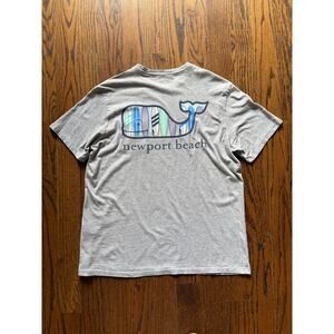 Mens SZ Large Vineyard Vines Newport Beach Gray T-Shirt Whale Surf Board Summer