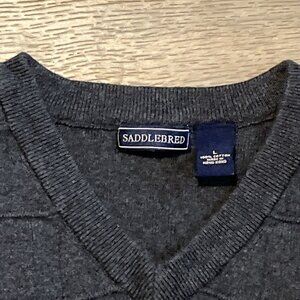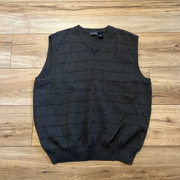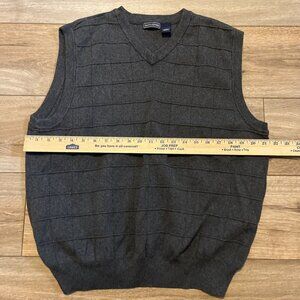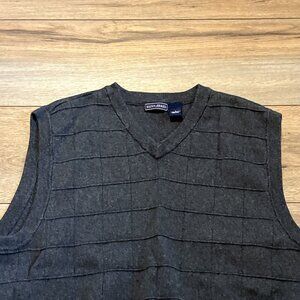 Men's Saddlebred Knit Sweater Vest LARGE Dark Gray Square Block Pattern Classic