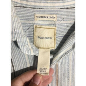 Mens Saddlebred Shirt Washable Linen Baby Blue Striped Lagenlook Casual Summer