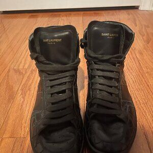 Men’s Saint Laurent Paris Black Croc-Embossed Leather High Top Sneakers