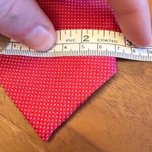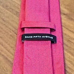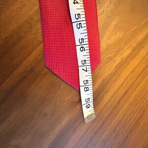 Men's Saks Fifth Avenue Red Silk Necktie - Red with white micro-dots. Tie is thinner profile and with a satin-like silk texture.