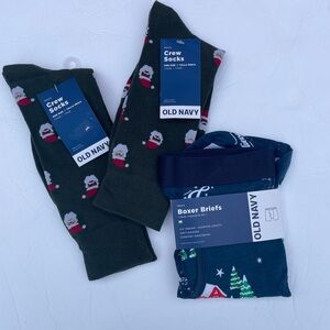 Mens Santa Socks PLUS Holiday Jersey Knit Boxer Briefs Underwear Old Navy Medium