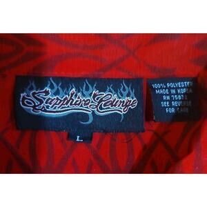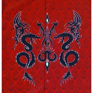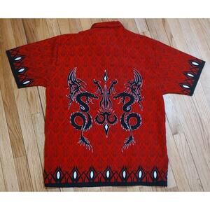 Men's Sapphire Lounge Shirt Dragon Red Black Button up Short Sleeve - Large