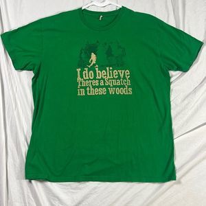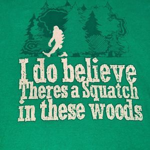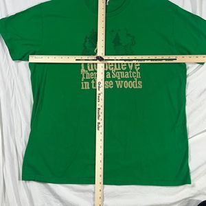 Men's Sasquatch Big Foot In The Woods Green Graphic Short Sleeve T-Shirt Large