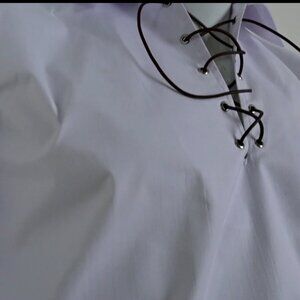 🔹Jacobite Shirt White Features: ✅Made with high-quality cotton fabrics, ensuring comfort and durability ✅Designed to allow free movement, making it suitable for various activities ✅Embrace the charm of Scottish style and make a statement at festival occasions ✅Effortlessly match or contrast with a kilt for a personalized look ✅Straight fit sleeves with button cuffs ✅Lace-up front adds a touch of authenticity ✅Perfect for weddings, renaissance fairs, parties, and cultural events ✅Metal eyelets on neckline to fasten the leather cord 🔹Package Includes: ✅1x Jacobite Ghillie Shirt White Please note the measurements provided in this size chart are based on the actual garment and NOT a human body size. To maximize chances of ordering correct size, We suggest you to measure your existing garment and compare it with this size chart OR take your body measurements and consider leaving extra room for fitting.