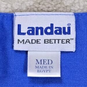 The product is a Men's Medium-sized Blue Top scrubs from Landau, a popular brand in the medical industry. Made from a comfortable cotton blend material, this solid blue top is perfect for men working in the healthcare field. Designed specifically for men with a solid color pattern, this top offers a professional and practical solution for those in need of work clothing. Made in Egypt, this top is a reliable choice for those looking for quality and durability in their uniforms.
