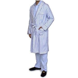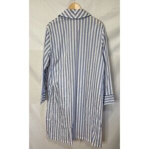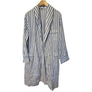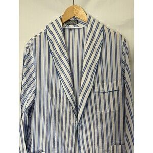 Men's Scully & Scully NYC Dressing Robe M Poplin Crisp White Blue Stripe $295