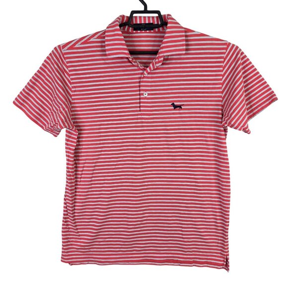 Mens Seaside Red & Gray Striped Polo Shirt Short Sleeve Cotton Stretch Size M