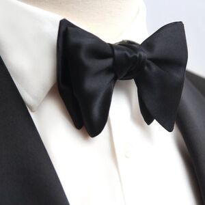 Men's Self-tied bow tie 100%Silk Black Bow tie Compact Butterfly