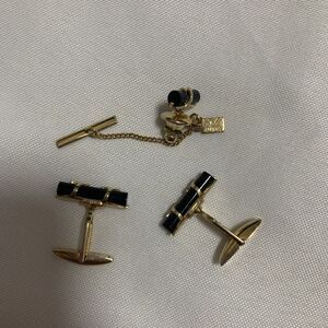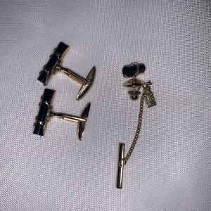 Men’s Set Of Black Bars Thin Design Quality Vintage EMMONS Cuff Links And Pin.