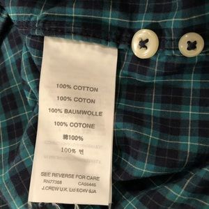 Men’s Sewn For J CREW Tartan Plaid Button Front Shirt Navy Green 100% Cotton L