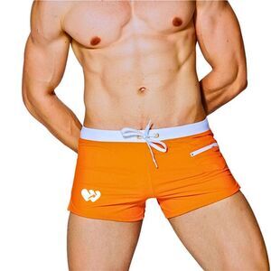 Men's Sexy Swim Trunks Front Pocket Resort Swimwear Orange S
