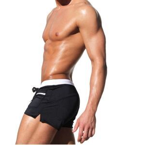 Men's Sexy Swim Trunks Front Pocket Resort Swimwear Black L