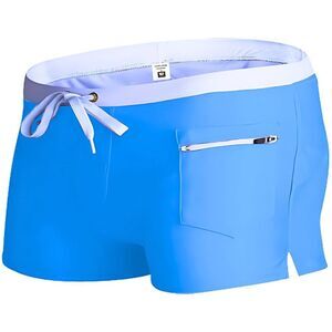 Men's Sexy Swim Trunks Front Pocket Resort Swimwear Sky Blue L