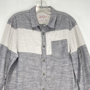 Mens Shirt Small Cotton Gray Color Block Button Up Long Sleeve Jeffrey Max