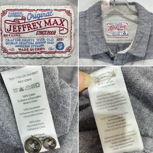 The shirt is part of the Jeffrey Max collection, model T14C-220-3A4-GREY, and was made in China.