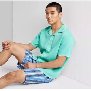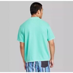 Men's Short Sleeve Knit Button up Polo Shirt - Original Use Turquoise Green S
