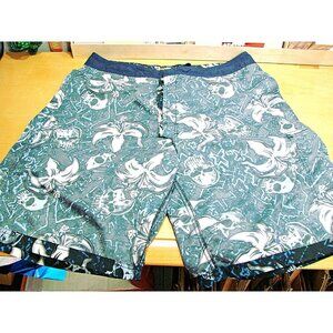 Mens Sideout Floral and Skulls Drawstring Hybrid Board Shorts Swim Trunks Sz 36