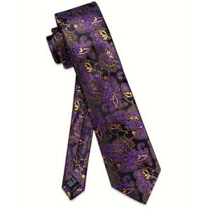 Men’s Silk Coordinated Tie Set - Purple & Gold Paisley