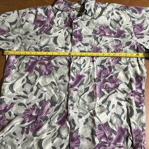 Men's Silk Icon 100% Silk Shirt Size L Short Sleeve Button Down Floral Green