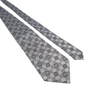 Mens Silk Necktie Geometric Pattern Gray Elegant Formal Accessory 59 Inches Long