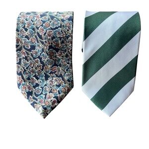 Men’s Silk Neckties Pair Blue Floral Oscar Dela Renta Green Stripe Bocara Preppy