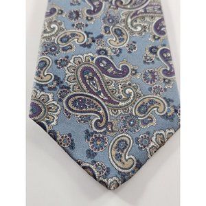 Men's Silk Tie Sha r'e Lyon New York Blue Purple Cream Paisley Silk Italy. Length 58", Width 3.5".