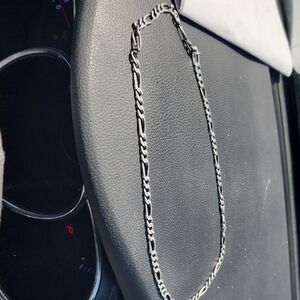 Elevate your style with this sleek silver 925 Italian Figaro chain necklace. Perfect for any occasion, this accessory adds a touch of elegance to your look. $250 obo