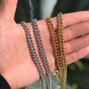 Men's Silver Curb Chain Cuban Link Necklace Gold Curb Chain Mens Choker Chain