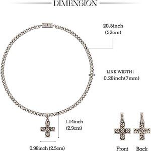 【Premium Brass and Silver Plating】Crafted from silver-plated brass, this Miami Cuban chain measures 20.5 inches (52 cm) in length and 0.28 inches (7mm) in width, while the cross pendant is 1.14 inches long and 0.98 inches wide. The sturdy build and intricate detailing provide durability and style, mens womens cross necklaces perfect for daily wear or special occasions.