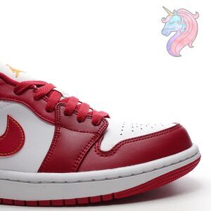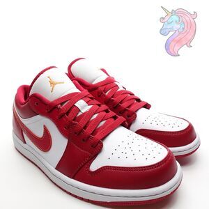 Mens Size 10 Nike Air Jordan 1 Low Cardinal Red Curry White Shoes 553558 607 New