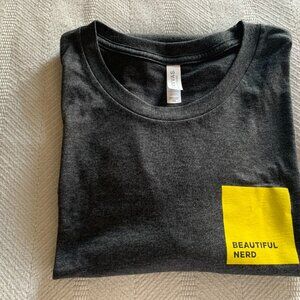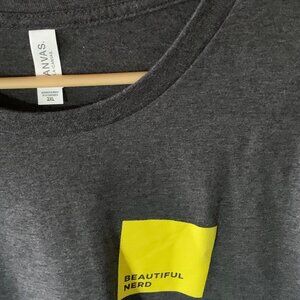 Men's Size 2XL Bella + Canvas Brand "Beautiful Nerd" T-Shirt Grey w/ Yellow Logo