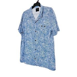 Mens Size 2XL Blue Short Sleeve Floral Hawaiian Button Down Shirt Luau Aloha