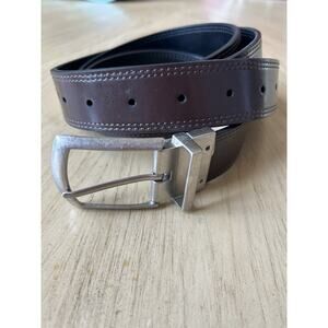 Men's Size 48 Genuine Dickies Black Brown Leather Belt Nickel Buckle Large Used