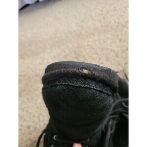 These boots are in good condition. They do have a slight scuff on the sole (pictured). Other than that, no other marks, tears or rips.