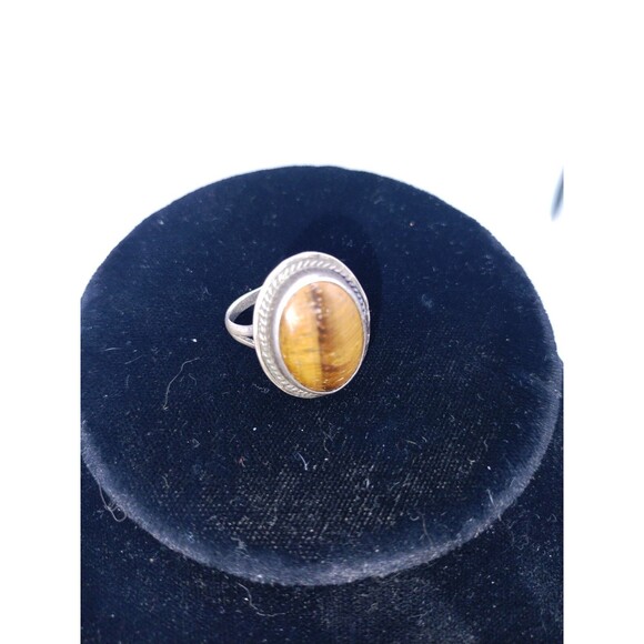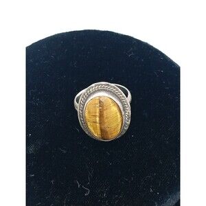 Men's Size 7 Silvertone Ring Retro Stone Looks Like Tiger Eye Stone. Condition is Pre-owned. Shipped with USPS Ground Advantage.