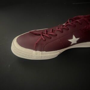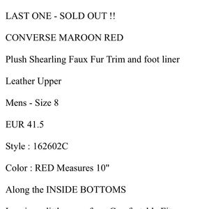Mens Size 8 CONVERSE Burgundy Leather Sneakers FUR TRIM Star Detail