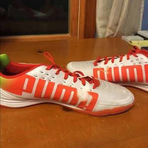 Slight wear shown in 4th picture on the Puma letters, but other than that in great condition! Men's size 9/12 Puma indoor soccer shoes. Taking best offer!