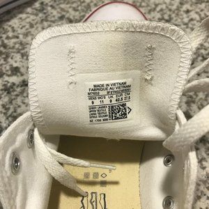 These are Men's Size 9 Converse Chuck Taylors White. They have been worn maybe 3 times and show the slightest bit of wear.