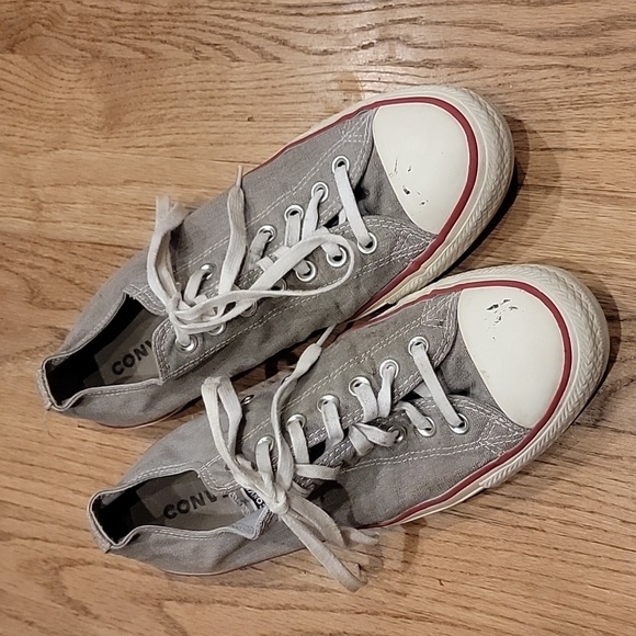 Men's size 9, women's size 11 light gray converse all star low top sneakers.