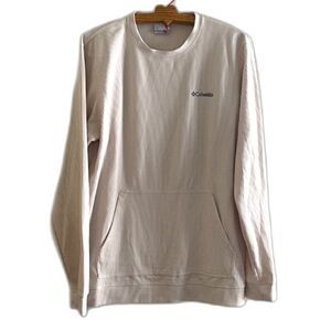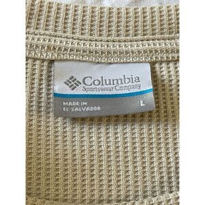 Men's Size L Columbia Waffle Weave Thermal Long Sleeve Crewneck Tan Front Pocket.