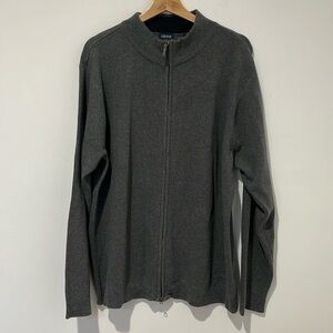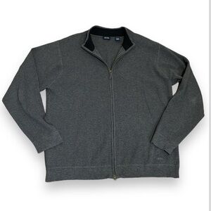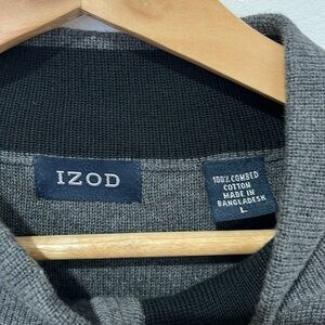Mens Size L Izod Gray Cardigan Sweater Full Zip Size Large Cotton Preppy Golf