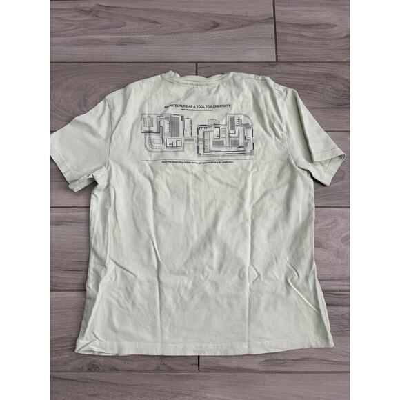 Men’s Size Large Zara Architecture Graphic T-Shirt Light Green KB