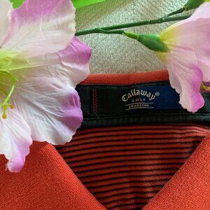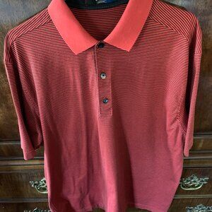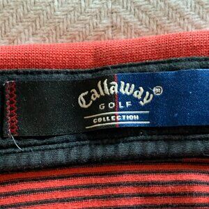 Men's Size Lg Callaway Polo Style Golf Shirt Blood Red w/ Black Pin Striping