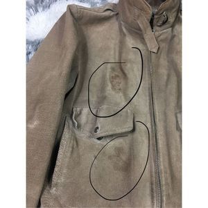 Mens Size M Leather Tan Jacket Saddlery Vintage Pre-Owned Multiple Stains